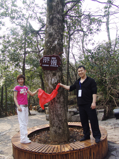 樂茂盛認養(yǎng)了一株200年的省級重點保護植物水青岡。因事不能前來的奧運冠軍唐九紅認養(yǎng)了一株百年省級保護植物血皮槭。2007年成功攀越天門洞的法國“蜘蛛人”阿蘭羅伯特,得知認養(yǎng)天門山古樹的消息后,主動認養(yǎng)了一株300年樹齡的水青岡。