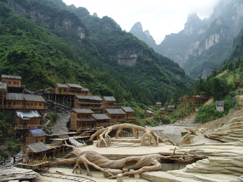 張家界天門山大型山水實(shí)景音樂劇《新·劉?抽浴肥鞘澜缟系谝慌_以高山奇峰為舞臺背景,以山澗峽谷為表演舞臺,有完整故事情節(jié)的音樂歌舞劇。舞臺選址在天門山風(fēng)景區(qū)山門口內(nèi)至天門山頂?shù)恼麠l峽谷,主舞臺以10000平米的玻璃鋼打造,是目前世界最大的全景玻璃鋼舞臺,背景融合了壯美瑰麗的奇峰險(xiǎn)壑、峽谷里的飛瀑流泉、空中的霧嵐飛煙、山上的林木花草以及壯觀的天門洞,整體形成了一個縱深10余公里,橫寬高差逾千米的超級大舞臺。同時,在峽谷山澗之間還將搭建一個跨度60米,高度32米的伸縮飛橋,這是目前世界范圍的演出項(xiàng)目中絕無僅有的大型舞臺機(jī)械裝置。這些獨(dú)有的裝置將成為該劇實(shí)現(xiàn)特殊藝術(shù)表現(xiàn)力和巨大視覺沖擊力的獨(dú)特資源。