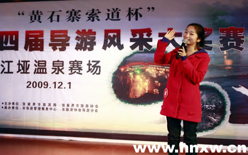 中新湖南網(wǎng)12月1日電(通訊員 鄧道理 周傳友)12月1日,張家界市第四屆“黃石寨索道杯”導(dǎo)游風(fēng)采大獎賽決賽活動在江埡溫泉度假村舉行,初賽勝出的20名優(yōu)勝選手進(jìn)行了當(dāng)日的激烈角逐,通過專家評委現(xiàn)場評分,汪華麗、杜爽、雷青青等10名選手最后當(dāng)選為本次活動的優(yōu)秀導(dǎo)游員。
