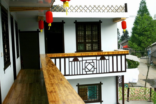 外觀是土家族的土家民族風(fēng)情建筑,淡藍(lán)色外墻、黑瓦、絳紅色窗套窗格、青竹的柵欄、二個(gè)是房間內(nèi)設(shè)施升級(jí),鋪設(shè)木地板、墻紙、按四星級(jí)酒店設(shè)床上用品。 位置好,在天子山頂丁香榕,一個(gè)名字就很美的地方,具體位置在丁香榕入口處第一家,而且是唯一的兩層樓,去天子山或袁家界及楊家界都只需要20分鐘左右車程,旅館距離環(huán)保車乘坐點(diǎn)大概只120米左右,很方便,旅館離自助游知名景區(qū)大觀臺(tái)景區(qū)步行8分鐘即可。 旅館的軟件,除了10間客房(24個(gè)床位)外,專門設(shè)計(jì)的驢友大廳是畫龍點(diǎn)睛之筆,里面有全木長(zhǎng)條桌椅,專門供自助游客晚上回到旅館后在里面一起聚會(huì)交流,玩殺人游戲,交流旅途心情,里面有留言墻,供旅途中的驢友聚散旅途之用,留言本,供住在旅館的自助游客留下心情之用,里面還有公用電腦、免費(fèi)張家界名茶、自助游書籍資料、住客與旅館的合影集、還有各自棋牌、如,五子棋、圍棋、中國(guó)象棋、國(guó)際象棋、跳棋、撲克等等,因?yàn)樽】涂梢酝ㄟ^這些打發(fā)時(shí)間,或認(rèn)識(shí)驢友。