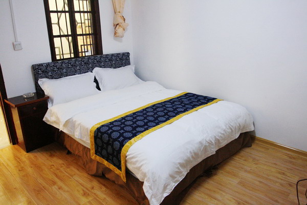 對(duì)了,驢友大廳還準(zhǔn)備了臺(tái)電視,晚上大家可一起欣賞節(jié)目,今年的足球世界杯可一起為喜歡的球隊(duì)邊喝彩邊喝酒,還準(zhǔn)備了幾張小木桌子及若干小木椅子,白天可以搬在屋外院子中邊曬太陽邊喝茶聊天或打牌,晚上可邊欣賞星星邊吃西瓜。 房間內(nèi)除了床上用品是準(zhǔn)四星標(biāo)準(zhǔn)配置外,床尾單是按土家印花布定制的,有民俗特色,電視、獨(dú)立衛(wèi)生間、飲水機(jī)等齊全,1.2米的床,淡黃色溫馨墻紙配杉木地板,墻上配原木相框及土家印花或銀飾配件,還在床頭柜上留個(gè)小小的厚厚的本子,記錄一路下來住在這個(gè)房間自助游客的故事。 房間的命名,除了用數(shù)字命名外,也配以景點(diǎn)名字,如,101號(hào)房也叫跳魚潭,102號(hào)房也叫紫草潭,103號(hào)房叫雙龜探溪等等,相應(yīng)房間內(nèi)掛上一副其景點(diǎn)的美圖,一樓上二樓那片大大的墻,為照片墻,游客的照片,我們的照片,旅館的照片,圍繞的整片墻,過道上及兩側(cè),掛上長(zhǎng)長(zhǎng)的大紅燈籠,掌柜的每天和來自各地不同的游客們交流,傳授他們張家界和鳳凰自助游的獨(dú)門秘籍,晚上一起吃吃喝喝,說說笑笑。