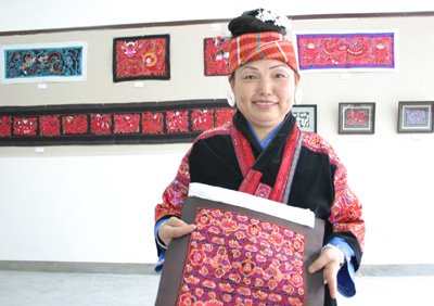 土家織錦藝術(shù)家葉水云 白布帕子四只角, 四只角上繡雁鵝; 帕子爛了雁鵝在, 不看人材看手腳。 這首山歌唱的是土家姑娘和土家織錦,對土家姑娘和土家織錦進行評價。 世居武陵地區(qū)的土家族,是一個精于紡織的民族,土家織錦便是土家族的傳統(tǒng)的工藝品,也稱“ 西蘭卡普”。土家婦女擅長紡織很早就見史籍,早在四千多年前,土家先民就掌握了簡單的紡織技術(shù)。秦漢時期,土家人的織錦被稱為“賨布”,曾是皇室的貢品。三國時期,土家人逐步掌握了漢族先進的染色技藝,能夠編織出五彩斑斕的“土錦”《華陽國志》稱之為“蘭干細布”,說它“織成文如綾錦”。唐代稱其為“溪峒布” “溪峒布”工藝已十分精湛,《溪蠻叢笑》描繪它“績五色線為之,文彩斑斕可觀。俗用為被或衣裙,或作巾,故又稱峒布。”宋代以后,土家人的紡織技藝已相當(dāng)成熟,能夠用絲經(jīng)棉緯織造色彩絢麗、工藝精巧的織錦──“西蘭卡普”。