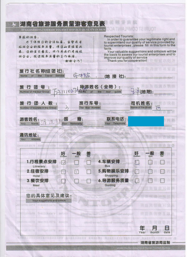 日本渡邊靜先生一行3人旅游質(zhì)量回饋