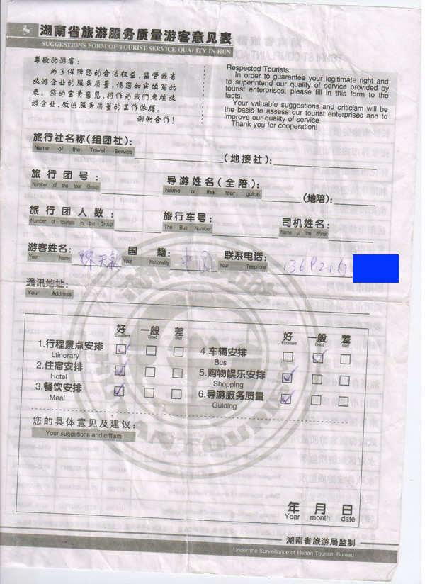 香港陳先生一行7人旅游質(zhì)量回饋