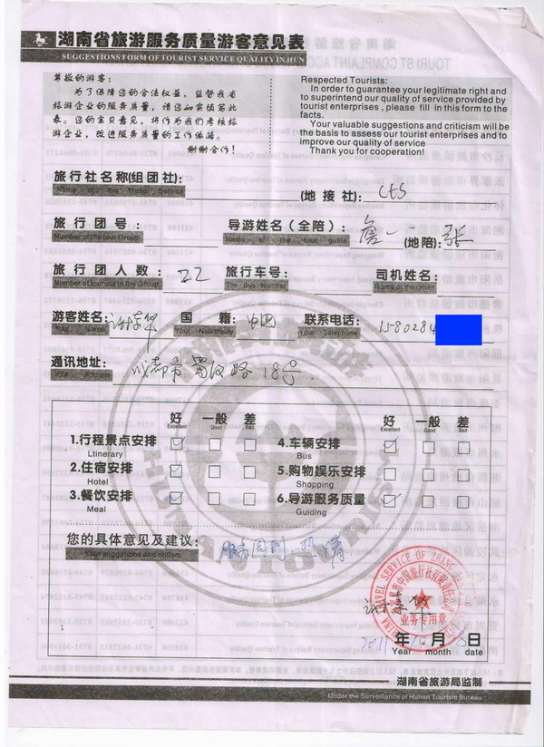 四川謝先生一行22人旅游質(zhì)量回饋
