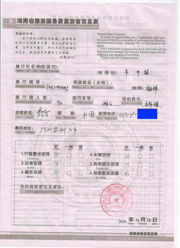 河北李先生一行9人旅游質(zhì)量回饋