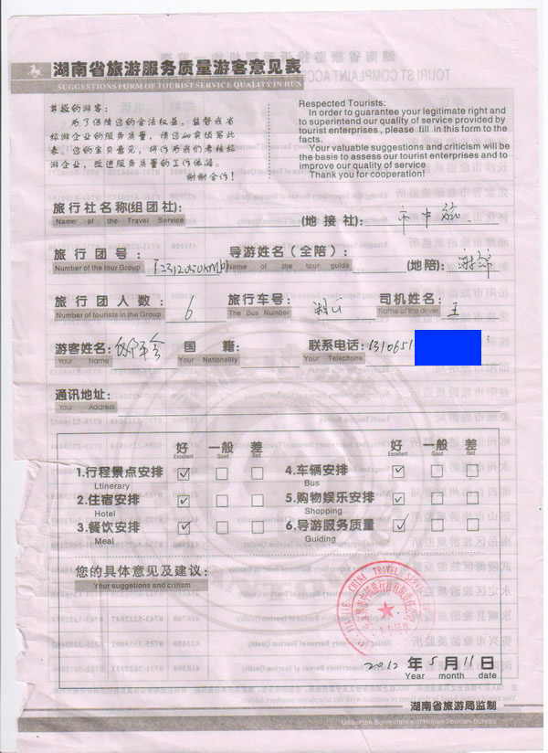 石家莊邸先生一行6人旅游質(zhì)量回饋