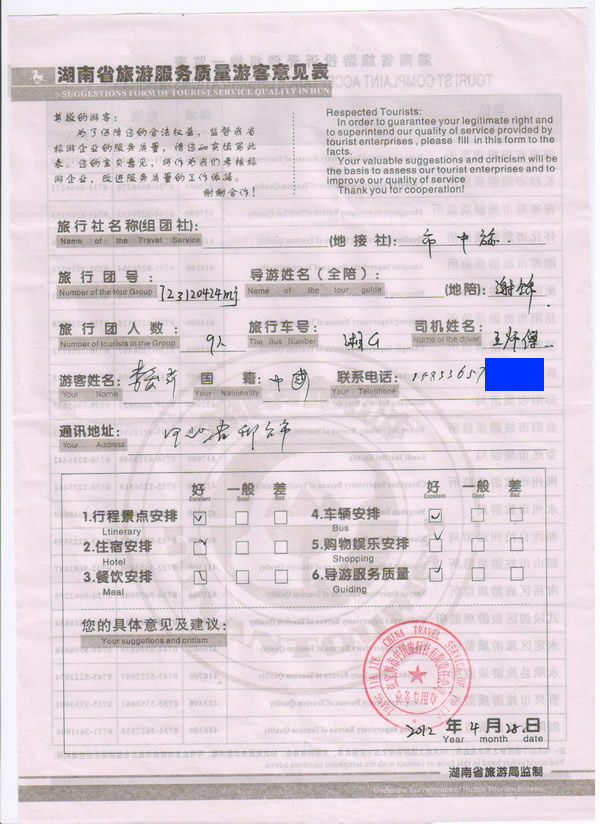 河北李女士一行9人旅游質量回饋