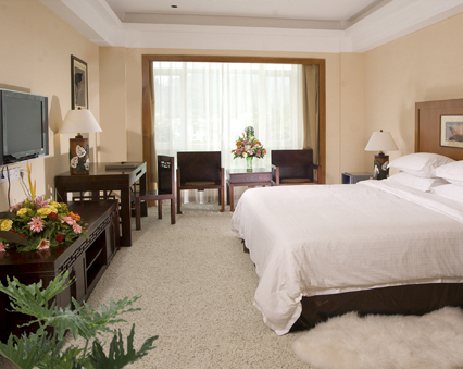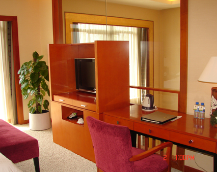 CEO套房,面積110平米,由兩個寬敞的客房和一個大廳組成,不論是從客廳還是從臥室都可看到美麗的園林景觀和室外游泳池。
