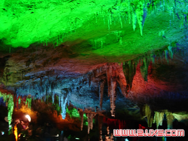 穹頂洞壁的鐘乳石投影水面,與水中晶瑩玲瓏的奇石渾然一體,在彩色燈光的照耀下,愈顯絢麗多姿,使人恍若步入龍宮仙境。泛舟進(jìn)洞四百米許,舍舟登岸,但見鐘乳石千奇百怪,倒懸洞頂,石筍石柱錯(cuò)落:“朝龍殿”、“瑤池”、“靈芝寶菌”、“龍王寶座”等五十多處景觀,今人目不暇接。更兼頭頂?shù)嗡缜伲_下清泉如瑟,冬暖夏涼,使人游興愈濃,流連忘返。龍王洞在石門縣城西北28公里處,正在1829省道干線邊。距龍王洞8公里有熱水溪溫泉療養(yǎng)中心。從龍王洞往西北5公里進(jìn)入張家界市境內(nèi),可不經(jīng)慈利縣城,去索溪峪80公里。