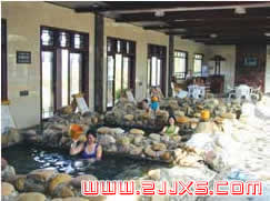 江埡溫泉度假村是張家界第一家溫泉度假村,也是目前湘西惟一一家仿古式半露天溫泉。建有20余種各具特色、各富功效的高標(biāo)準(zhǔn)露天溫泉池和室內(nèi)溫泉池。自然園林式布局,鵝卵石青石板小路,假山瀑布,小橋流水,溫泉池宛若明珠鑲嵌其中,一派恬淡寧靜的山野仙境,極具鄉(xiāng)土格調(diào)。 她集溫泉、餐飲、客房、會(huì)務(wù)、健身、娛樂、桑拿、美容等經(jīng)營項(xiàng)目于一體,特別適宜于休閑、度假、娛樂、療養(yǎng)、會(huì)議、培訓(xùn)和商務(wù)活動(dòng)。