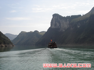 [覃垕槍]從釣魚臺順河下行2公里,有段開闊河面,湖光山色令人賞心悅目。游人可以仰望北岸峭壁上的“覃垕槍”。槍桿插在一百多米高的峭壁石窟上,有碗口粗,長約3米,呈紅褐色。傳說覃垕當(dāng)年曾經(jīng)用過這支標(biāo)槍,又說是覃垕晾衣篙。是槍?是篙?游客總想問個水落石出,于是“覃垕槍”成了“槍篙之謎”。