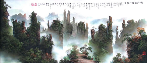 李軍聲創(chuàng)造的砂石畫(huà),大膽突破傳統(tǒng)繪畫(huà)用材,利用自然植物的色相創(chuàng)造性地衷用自然,極具藝術(shù)價(jià)值與收藏。他說(shuō)過(guò):“一件精美的藝術(shù)品不受材料和技巧的束縛,而取決于創(chuàng)作者的心靈感悟”。軍聲畫(huà)院和軍聲砂石畫(huà)就是這樣一處閃爍在張家界自美景中的,獨(dú)具藝術(shù)魅力的人文景觀。