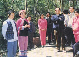 ▲1995年3月26日,江總書記在張家界國家森林公園 黃石寨小憩時,拉二胡與民同樂