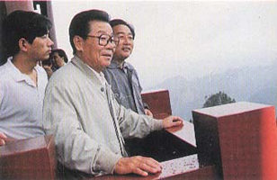 ▲1995年9月8日,全國政協(xié)主席李瑞環(huán)視察天子山(深圳閣),與總指揮張遠(yuǎn)喜同志(右一)親切交談。張遠(yuǎn)喜現(xiàn)任武陵源湘深國際旅貿(mào)有限公司董事長