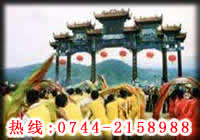 這是土家族古老的祭祀舞蹈。相傳八寶為古代土家先祖八個部落的首領(lǐng),人稱“八部大王”、“八部大神”,后來,八位首領(lǐng)先后戰(zhàn)死。后人為紀(jì)念他們,便精心制作了八個銅鈴,并按八部王在位時穿的八幅羅裙,騎著象征祖先騎過的寶馬,手搖銅鈴,翩翩起舞,高唱祭祖求福的古歌,以示懷念。因?yàn)榘藗銅鈴代表八個首領(lǐng),就把這種舞蹈取名為“八寶銅鈴舞”。 |
