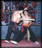 (7)胸部打刀:將鋒利大刀刃口置于胸部肌肉上,用一根拳頭粗木棒猛擊刀背,至棒斷而胸部無傷。 |