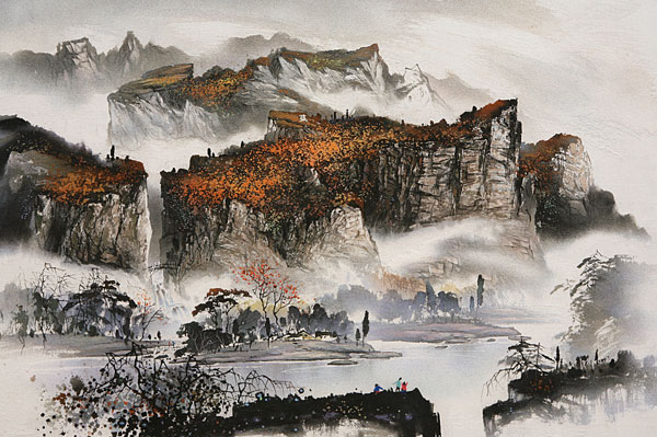 2004年,人民大會(huì)堂收藏李軍聲的砂石畫《巍巍天門》。