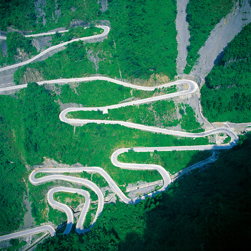 在穿過天門隧道后,就可以欣賞公路奇觀了,這時俯瞰通天大道,領(lǐng)略那蜿延迂回的旖旎風(fēng)采,在這么壯觀的自然與人文結(jié)合的奇觀面前,能使人油然而生一種內(nèi)心的最深刻最奇特最形象最讓人遐思的感慨.